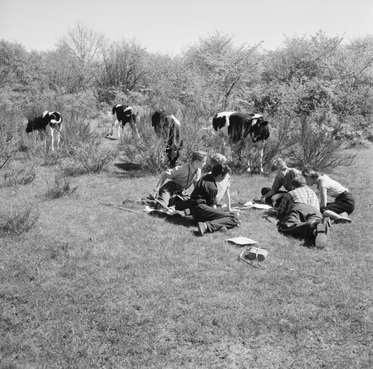 Läroverkselever på studieutflykt till Tjörnedala. (Foto i samband med Blackebergs Lärov. Tåghem)