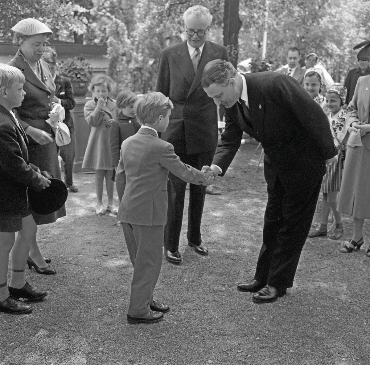 Titel: Modelljärnväg inviges på Skansen. Kronprinsen och Generaldirektör Erik Upmark