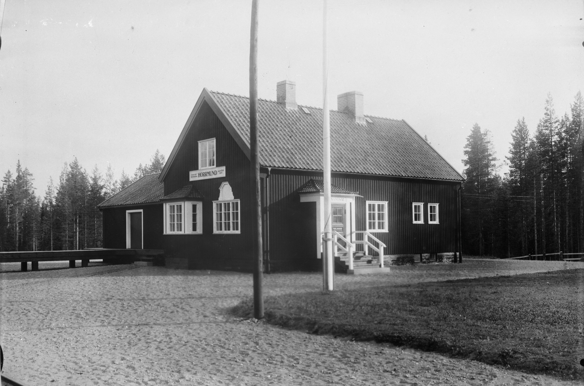 Hållplats anlagd 1928. Envånings stationshus i trä sammanbyggt med godsmagasinet