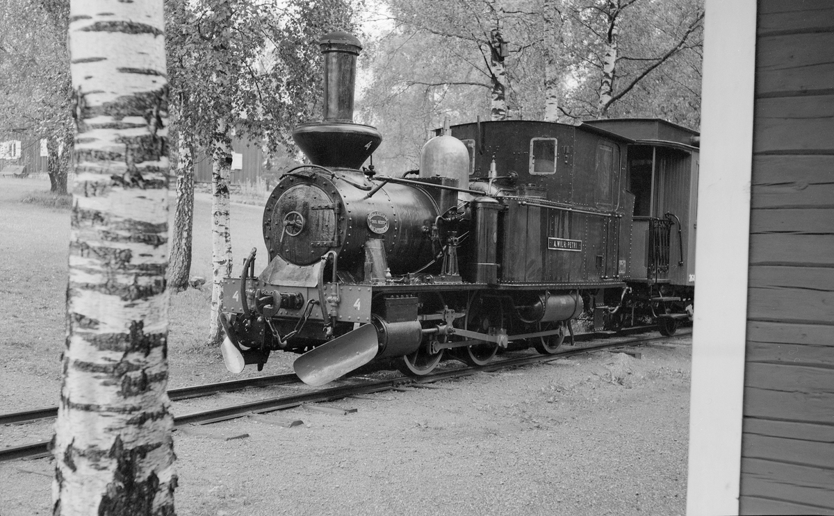 Titel: Hvetlanda - Sävsjö Järnväg, HvSJ lok 4 "A.Wilh.Petri". Senare Statens Järnvägar, SJ Kp 3048. På bilden uppställt Nässjö Hembygdspark.