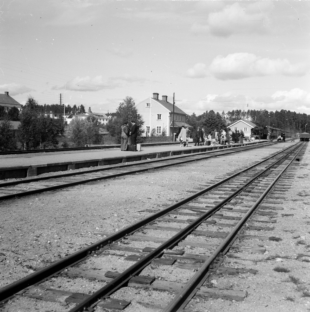 Iggesunds station och bangård. På spåret bredvid ångloket syns en motordressin. Treskensspår
