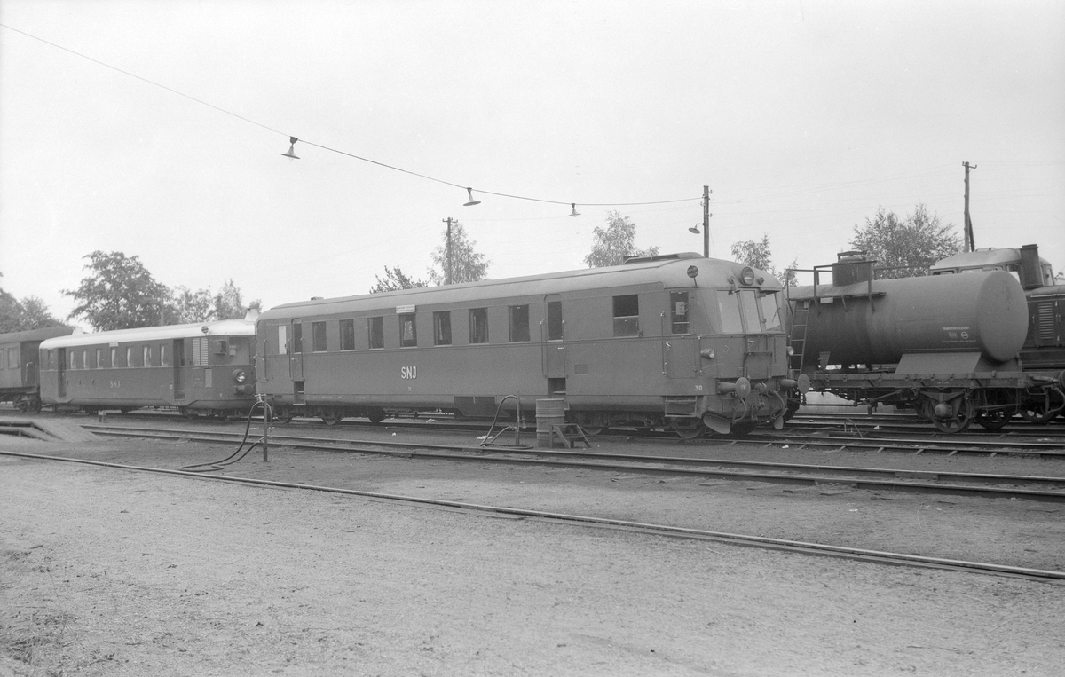 Titel: Dieselelektrisk motorvagn. Stockholm - Nynäs Järnväg, SNJ XB05 30. Ursprungligen Malmö - Ystads Järnväg, MYJ 250.