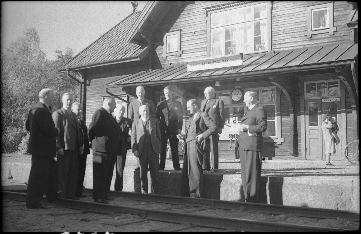 Delegation från SJ vid Hundsjö station, i samband med evakueringen av finska flyktingar 1944.