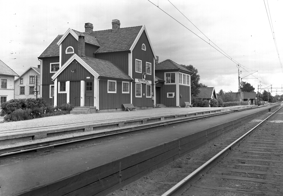 Titel: Stationen öppnades 15 oktober 1916 som hållplats och kallades då Remmene. 1920 inreddes en bostadslägnhet en trappa upp i stationshuset i trä.