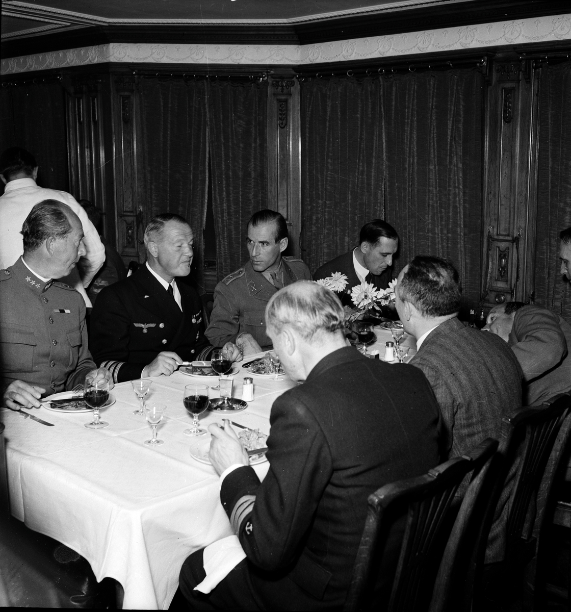Krigsfångeutväxling i Trelleborg. Männen sitter och äter middag.
