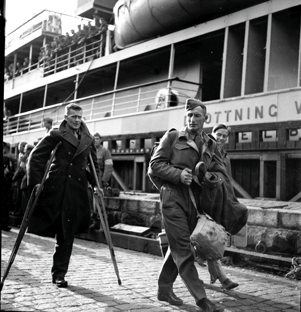 Krigsfångeutväxling i Trelleborg. Fartyget heter Drottning V.....