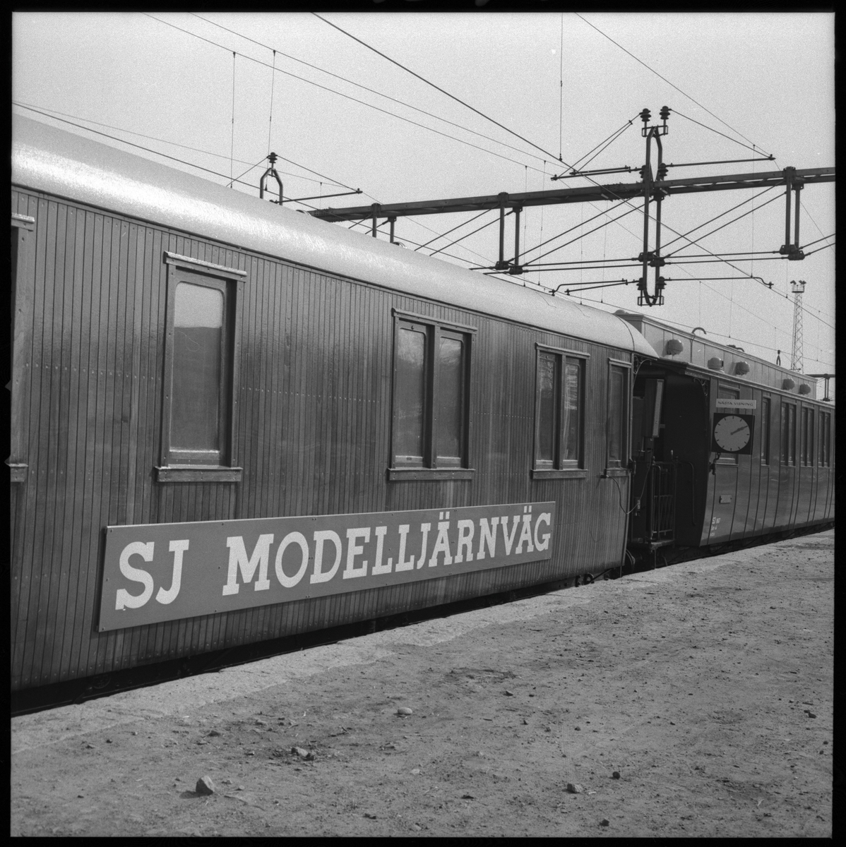 Statens Järnvägar, SJ utställning av modelljärnväg mot framtiden som är en gåva med anledningen av 100-årsjubileum 1956-12-01.