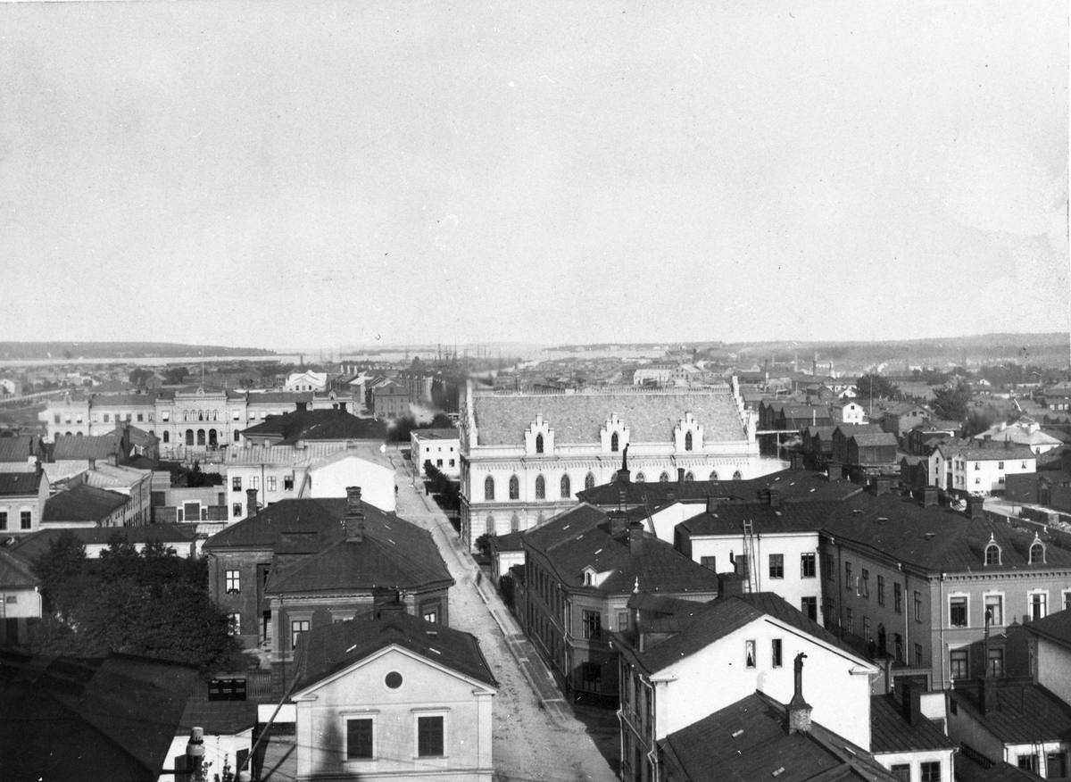 Gävle sedd österut med Gävle C stationshus i mitten till vänster.