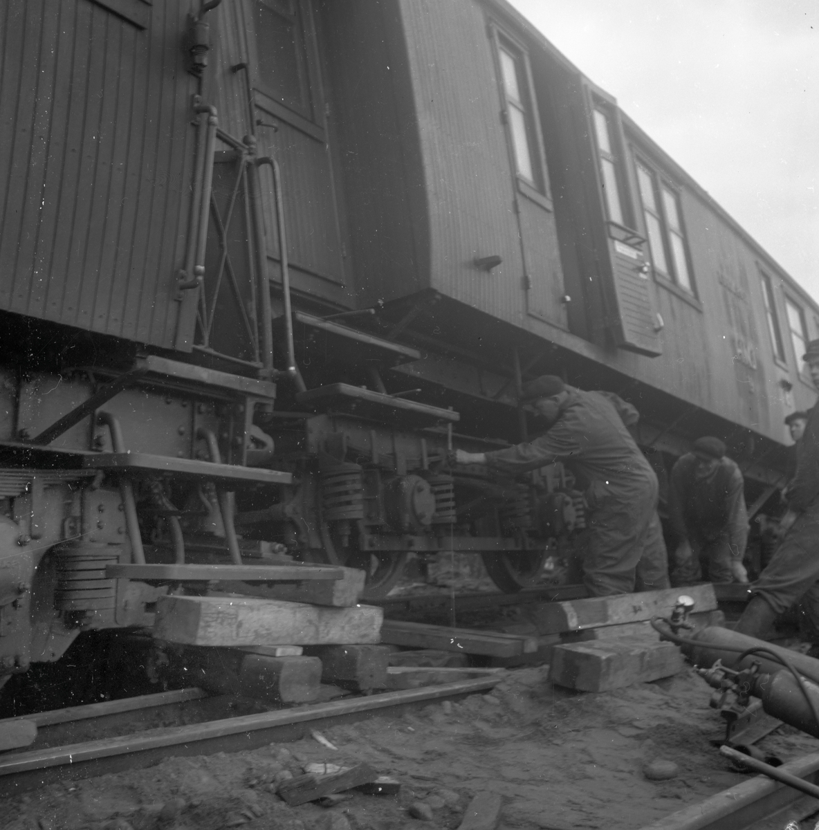 Tårurspårning vid Bredaryd. Tåget var på väg till Halmstad. Det tillhörde Halmstad-Nässjö Järnvägar, HNJ, och drogs av ångloket HNJ 28 och bestod av fyra vagnar. En resgodsvagn, HNJ F3 761, en postvagn HNJ 19 och två personvagnar däribland HNJ 1011.