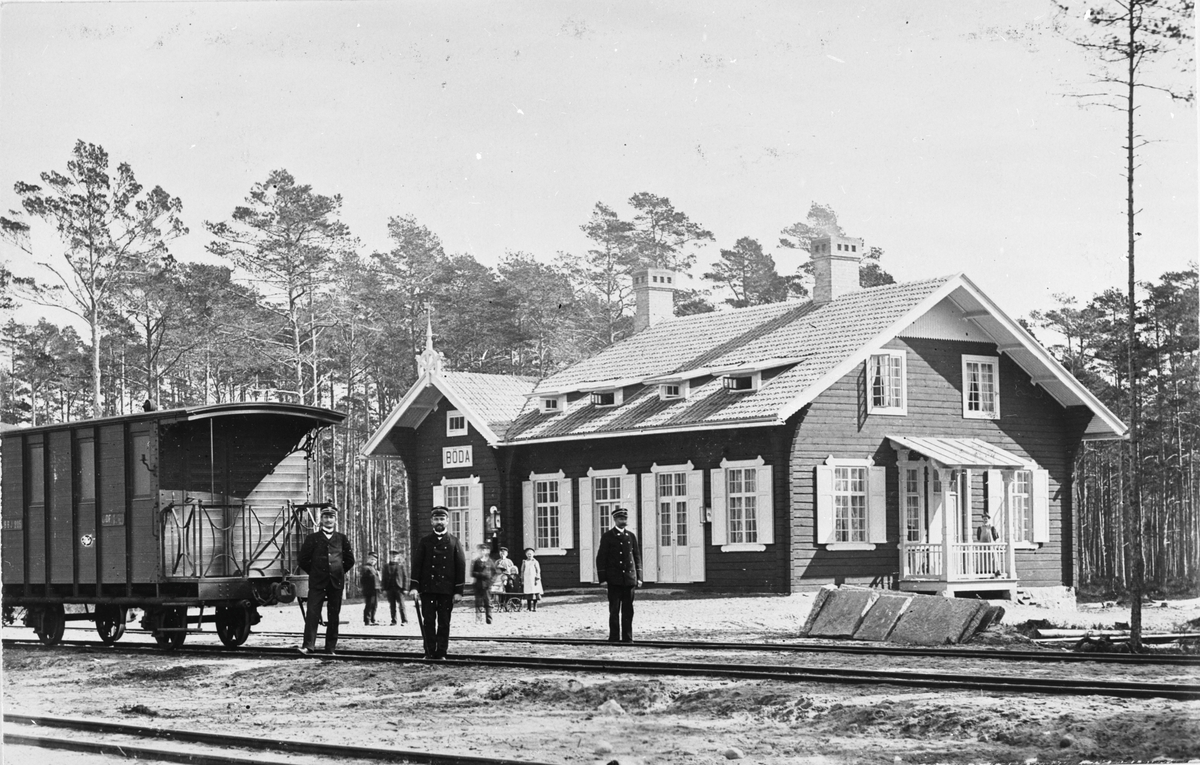 Järnvägsstationen i Böda. På spåret syns kombinerad post- och resgodsvagn BBJ DF 205.
