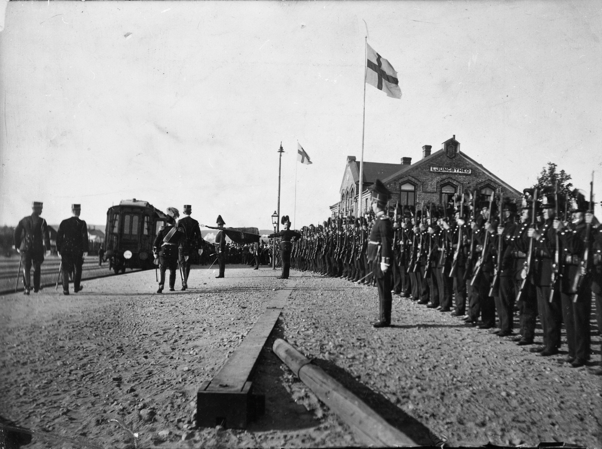 Ljungbyheds Station vid Gustaf V:s besök .Stationen togs i bruk 1892.