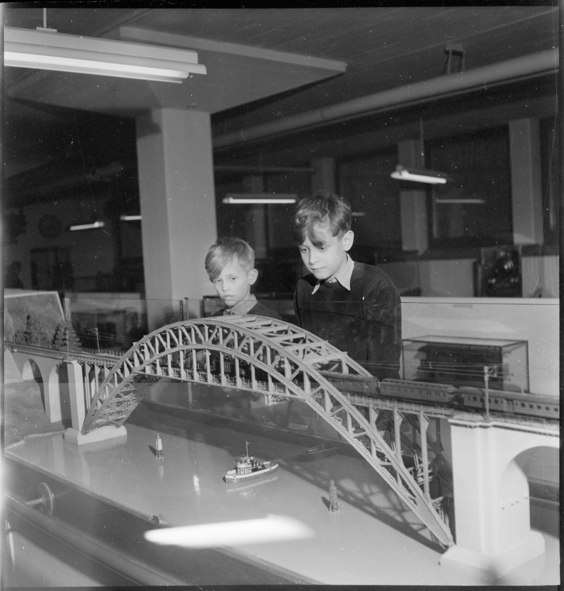 En modell på Årstabron vid järnvägsmuseets lokaler på Torsgatan, Stockholm.