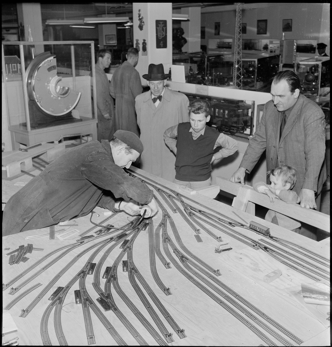 Titel: Modellbanan Älvsjö - Stockholm södra under uppbyggnad av Förste reparatör Karlsson.
