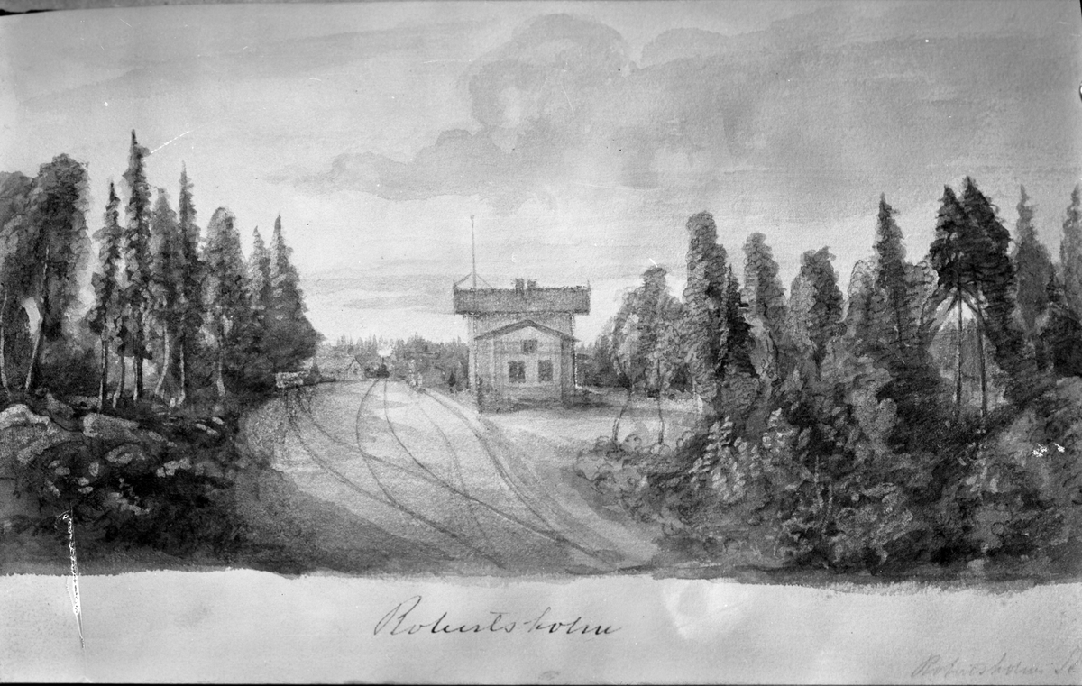 Stationen. Ur Adelskölds skissbok. Foto av teckning.