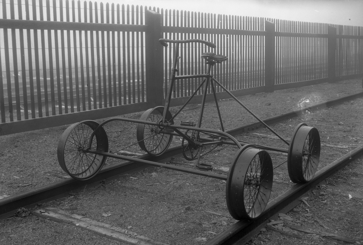 Fyrhjulig trampdressin; Jvm. Från Norra Södermanlands Järnväg ,NrSlJ, för banbefäl. Tillv ca 1900