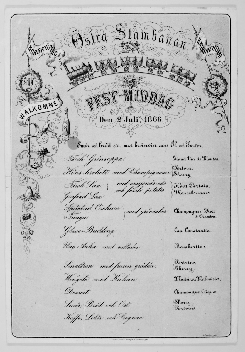 Meny för Östra Stambanan, Norrköping - Katrineholms festmiddag.