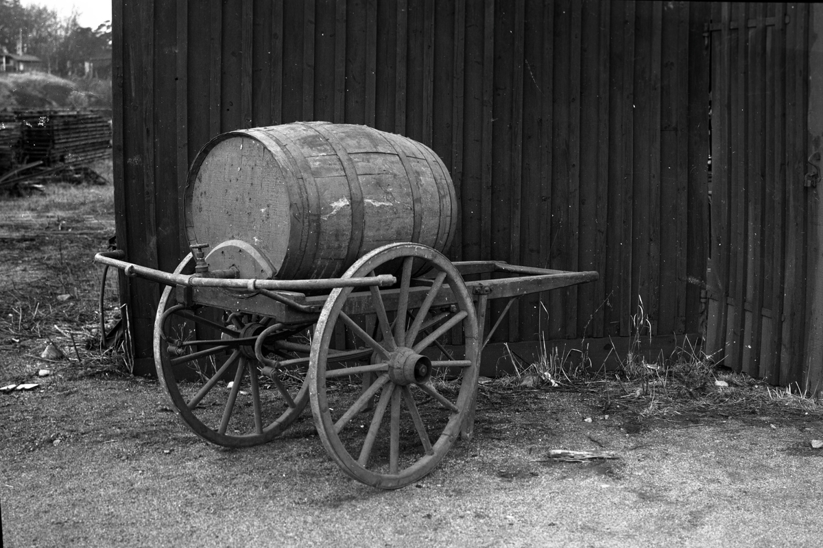 Titel: Vattentunna på hjul ; Järnvägsmuseet. Använd i Hästveda och Alvesta från 1881. Ark nr 5152.
