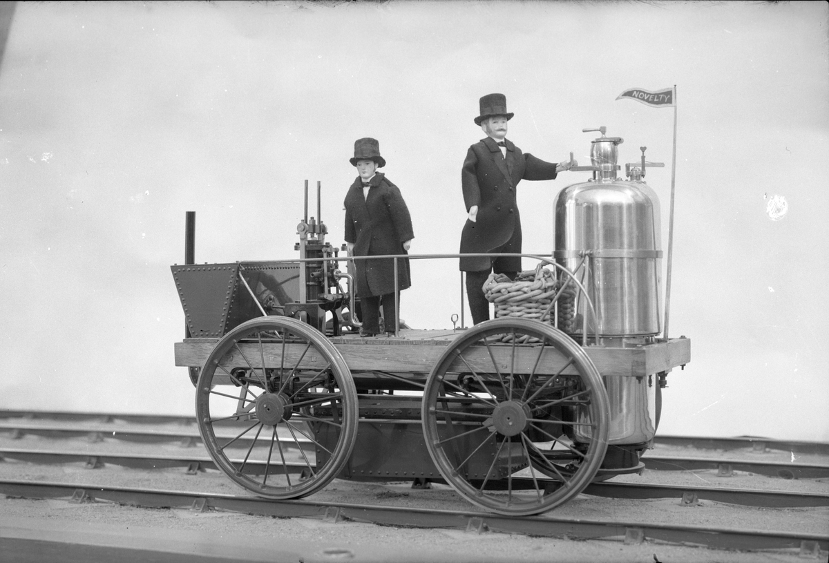 Modell av Novelty (Rainhill -tävlingen); Järnvägsmuseet.