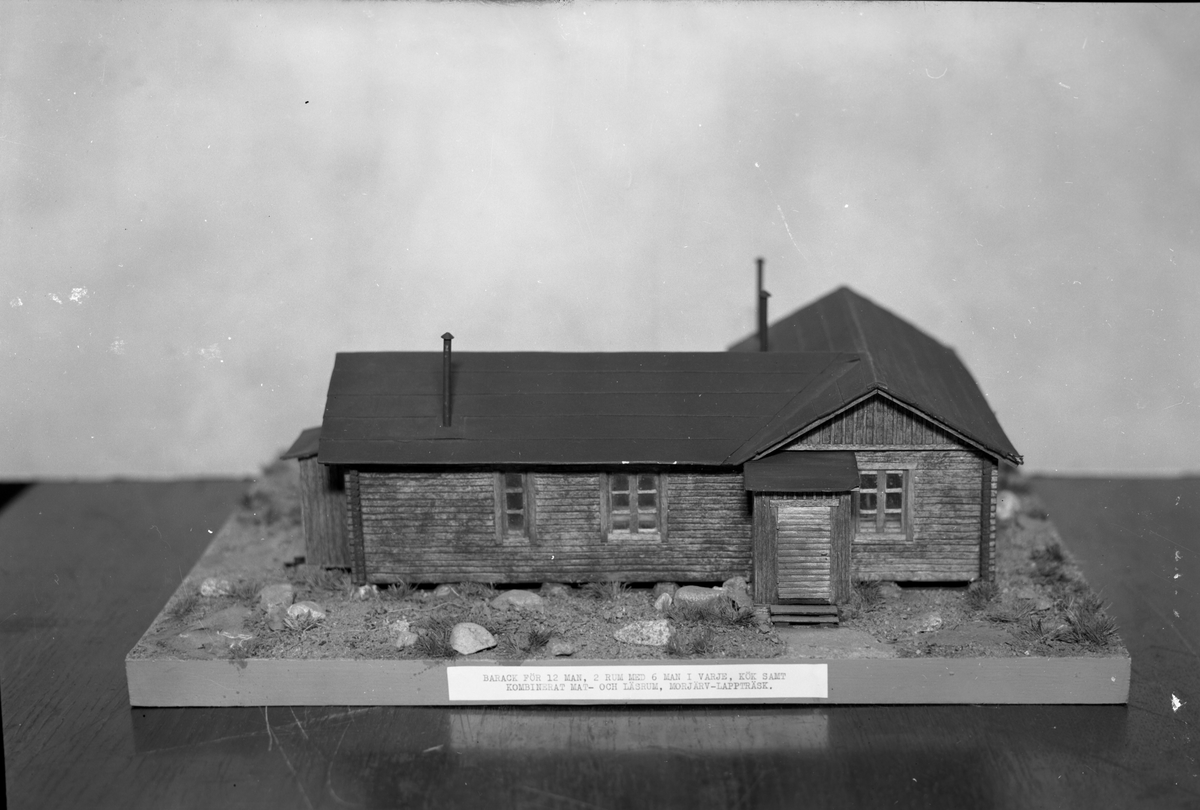 Modell av rallarbarack för 12 man; Järnvägsmuseet.