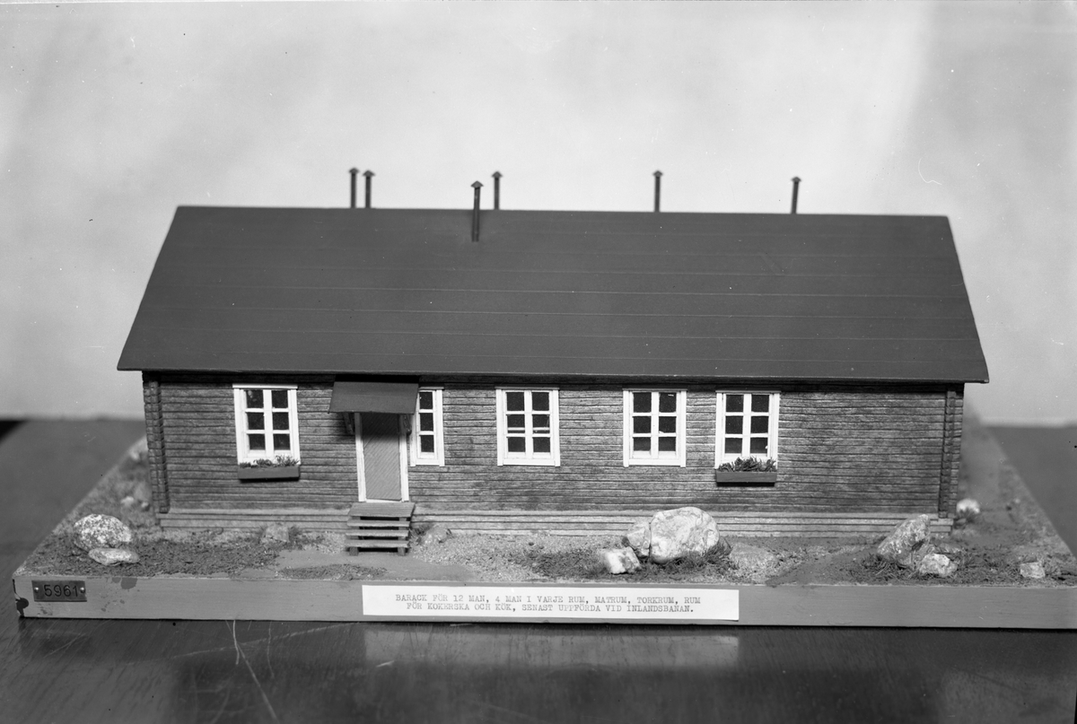 Modell av rallarbarack för 12 man; Järnvägsmuseet.