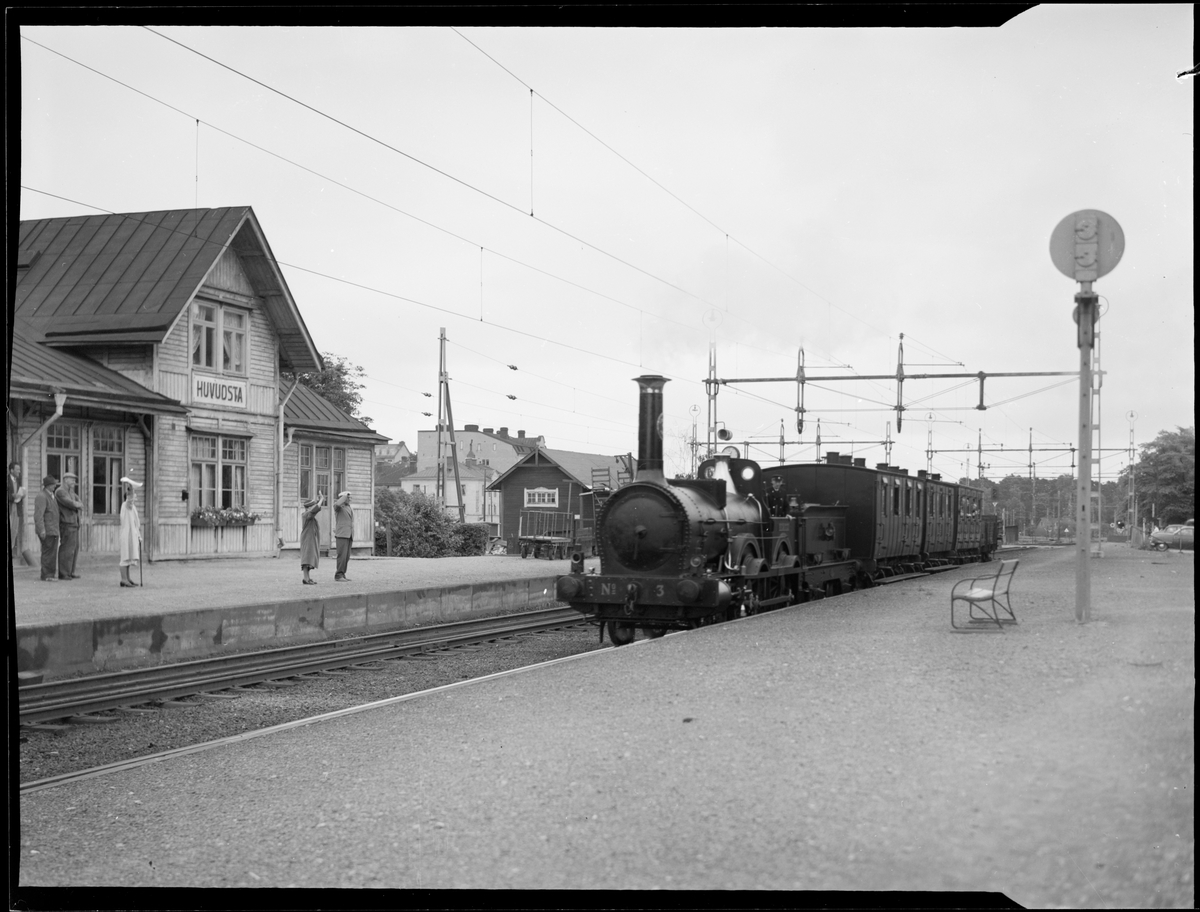 Statens Järnvägar, SJ B 3 "Prins August" vid Huvudsta station under International Congress of Museums 1959.