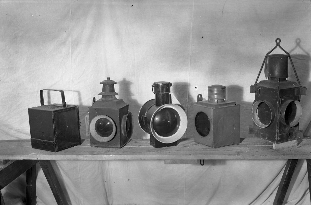 Div lyktor; Järnvägsmuseet. Semaforlykta fr (S&NJ) Sverige & Norge Järnväg. Ark nr 2279 Skivsignallykta fr Askersund - Skyllberg - Lerbäck Järnväg. Ark nr 2351 Bro- och skivsignallykta (special) fr Örebro Ark nr 1306 Semaforlykta Ark nr 1280 Skivsignallykta fr (MaVJ) Markaryd - Veinge Järnväg Ark nr 5519.