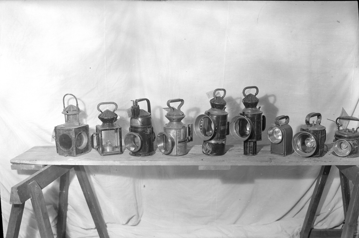 Div lyktor; Järnvägsmuseet. Handsignallykta för Tågklarerare (UGJ) Uppsala - Gävle Järnväg. Ark nr 5228 Handsignallykta Ark nr 1263 Handsignallykta tillv i England Ark nr 1256 Handsignallykta Ark nr 1257 Handsignallykta för acetylengas Ark nr 1259 Handsignallykta Ark nr 1260 Handsignallykta elljus, äldre modell Ark nr 5387 Handsignallykta från Karlstad Ark nr 770 Handsignallykta elljus, äldre modell Ark nr 2049