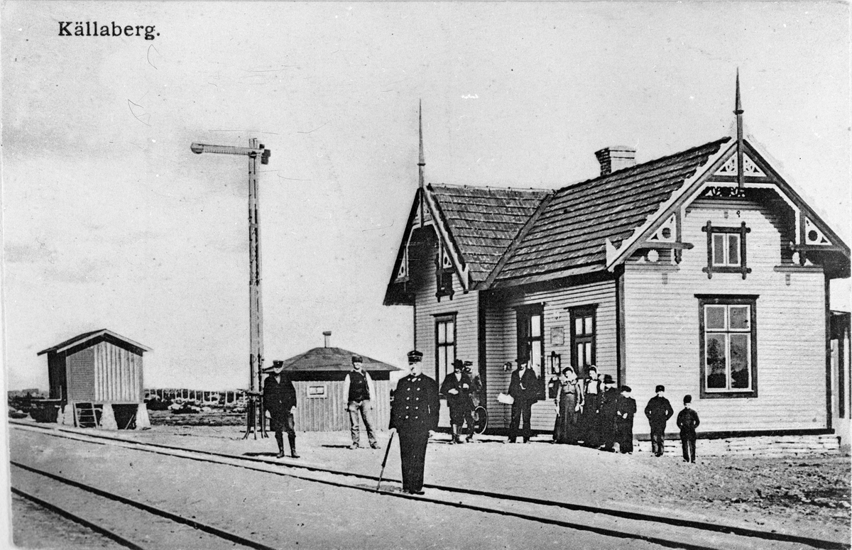Stationens första stationsföreståndare Olof Walfrid Olsson; och några ortsbor