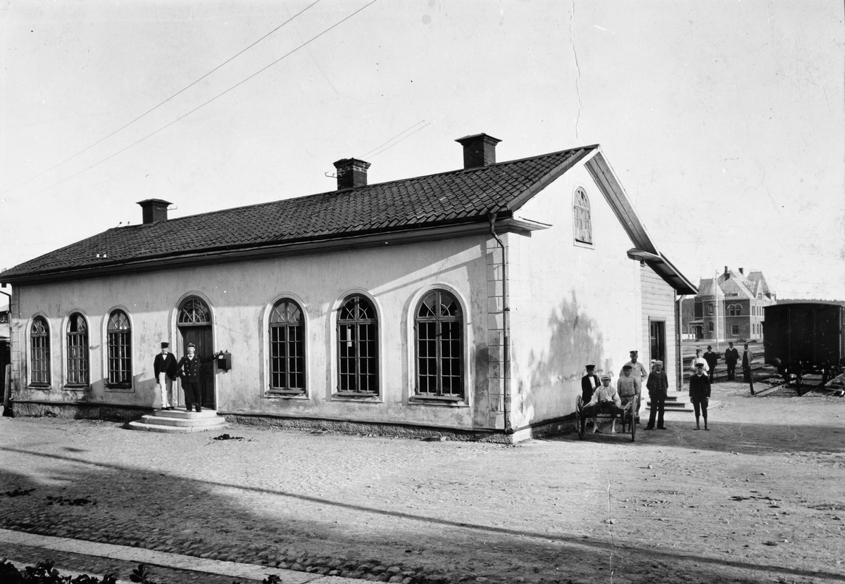 Gamla stationshuset. Nya stationshuset i bakgrunden