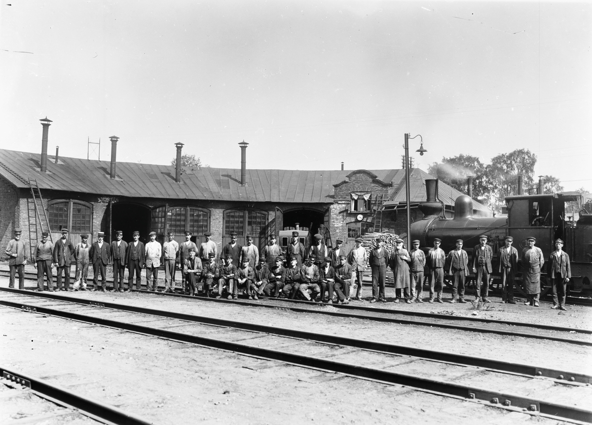 SDJ, Södra Dalarnes Järnväg lokstall och personal med SDJ lok 1 "Hedemora".