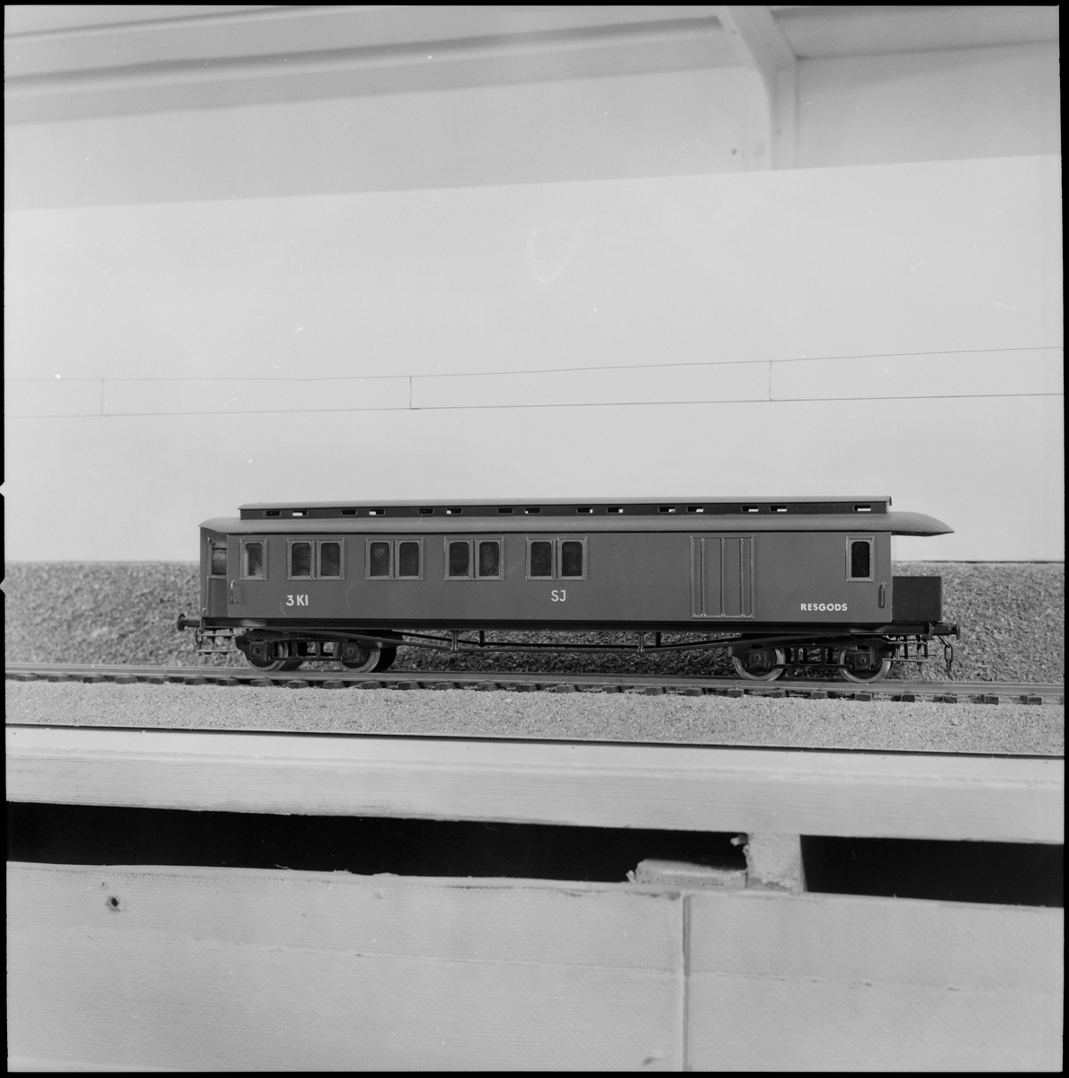 Modell av en kombinerad person och resgodsvagn. Statens Järnvägar, SJ CFo.