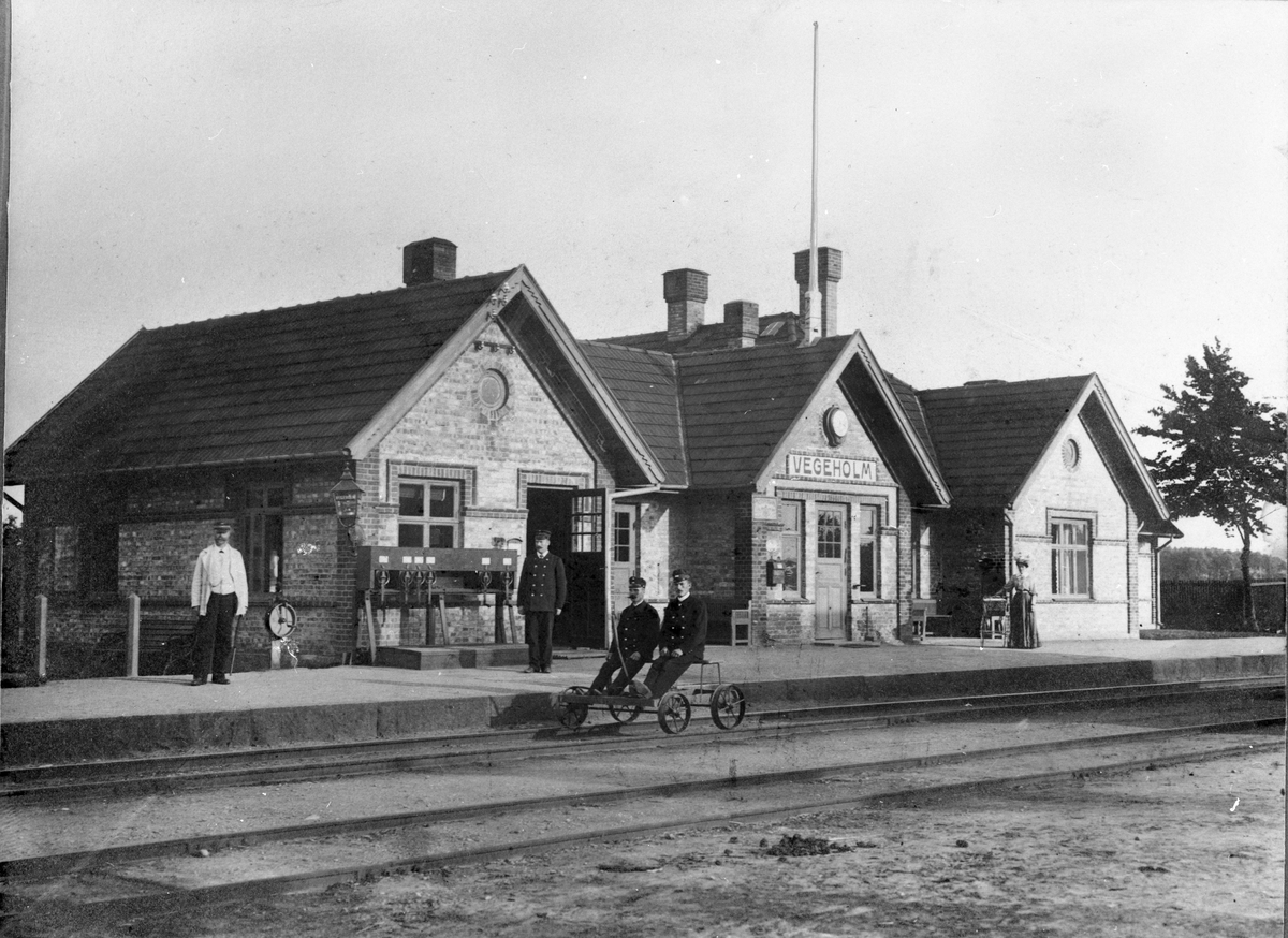 Vegeholms trafikplats anlades 1884. Samma år öppnades stationen av Skåne - Hallands Järnväg. Stationshuset tillbyggts 1906 och 1929. Här syns byggnaden innan renoveringen och mekanisk ställverk.