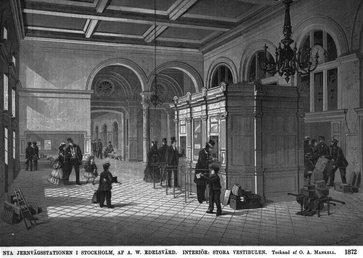 Vestibul Biljettförsäljning, Teckning av O A Mankell