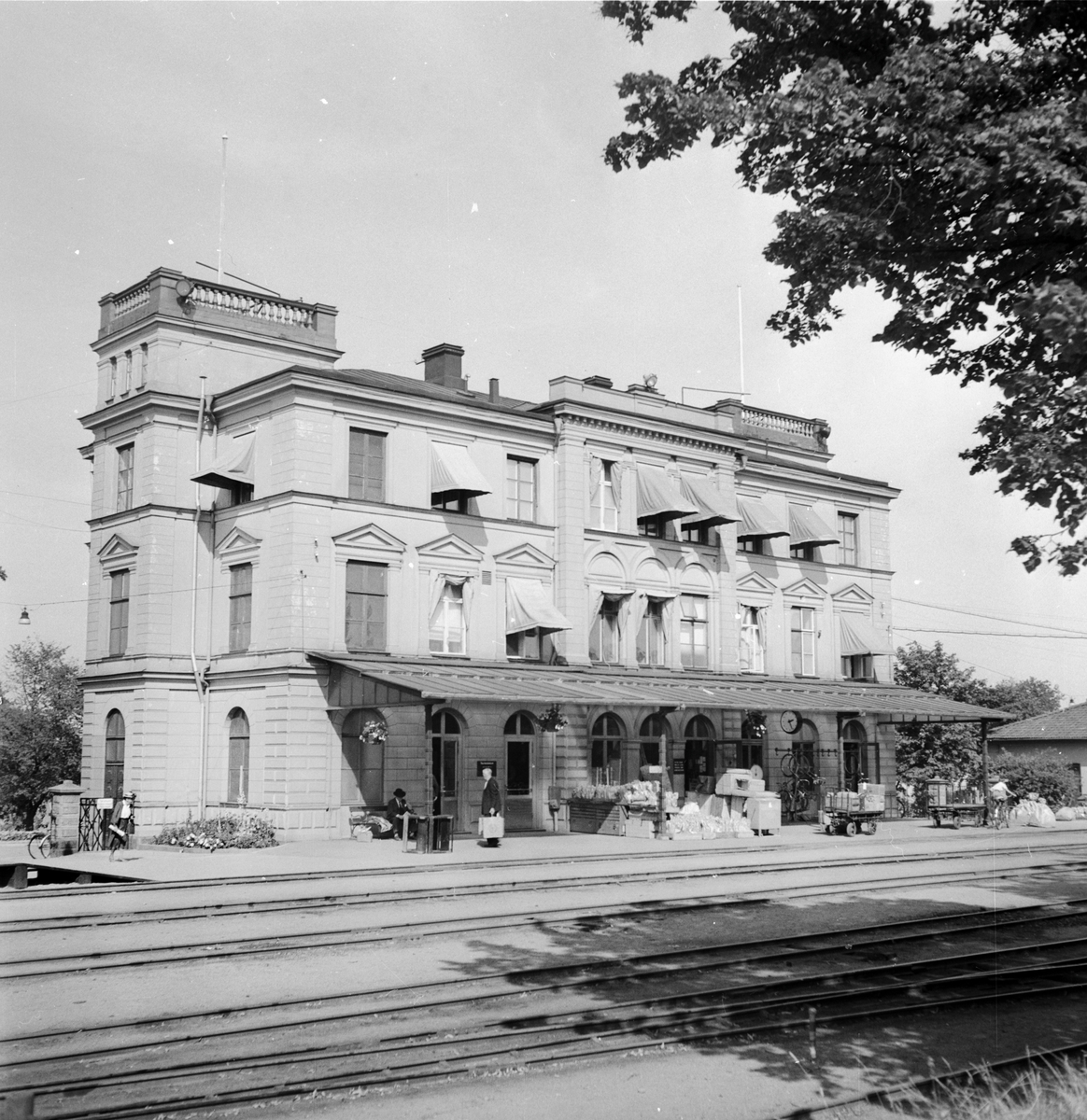 Putsat trevånings stationshus byggt 1879. Arkitekt A E Melander. K-märkt 1986.