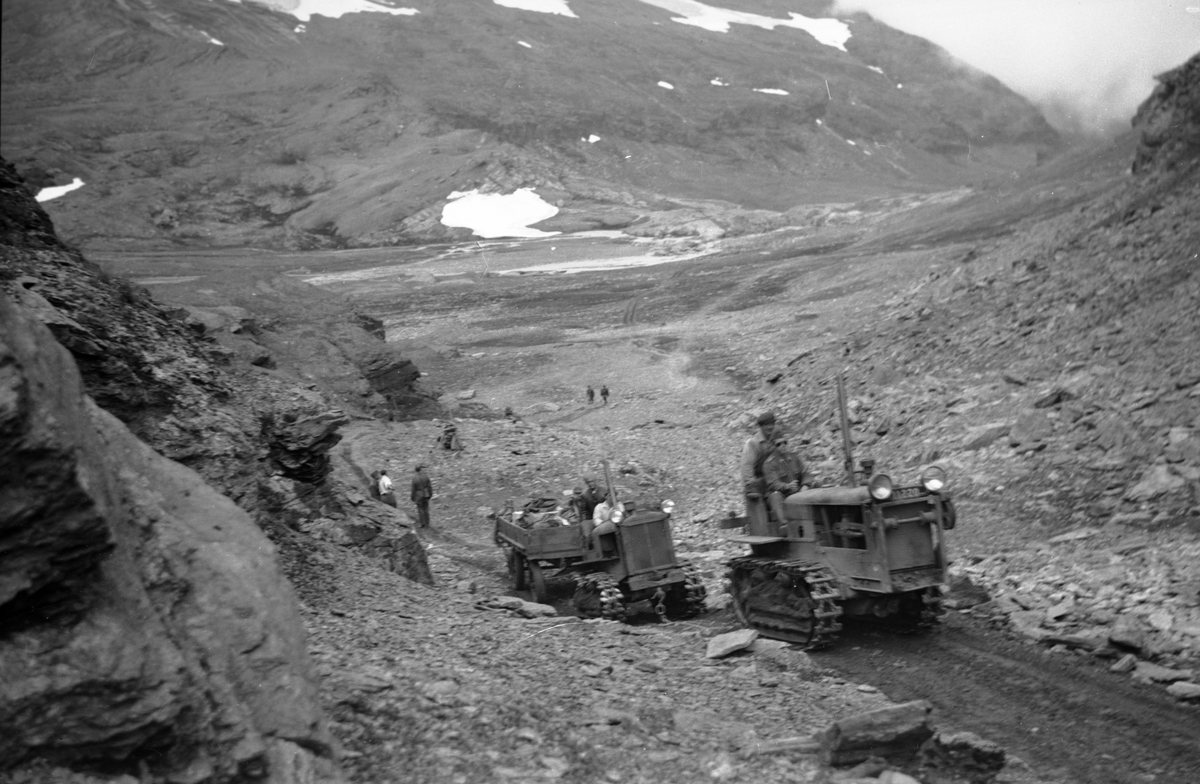 Arbetsbild (stugor). Motiv från Kiruna - Riksgränsen.