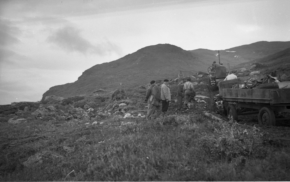 Arbetsbild (stugor). Motiv från Kiruna - Riksgränsen.