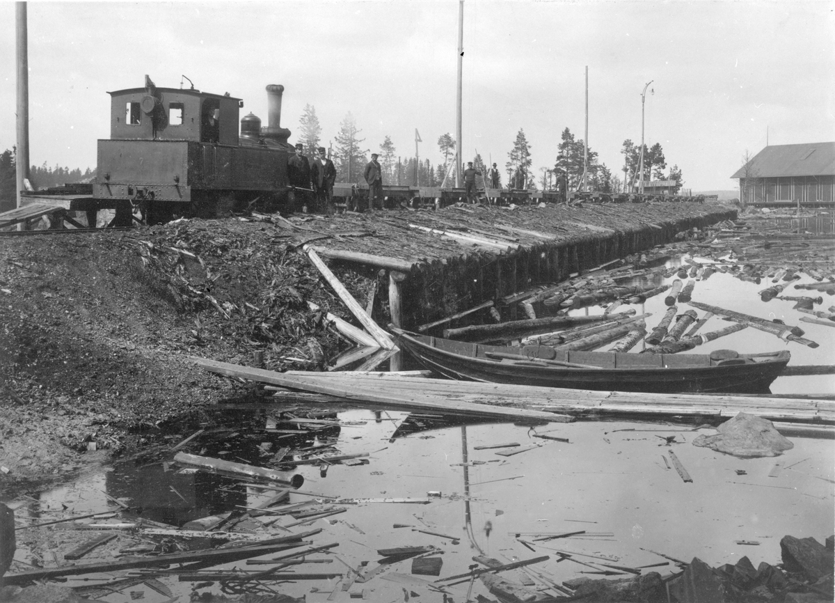 DONJ lok 7,Timmerlossning vid "tippen". Mannen med smörjsprutan är Albert Forslund.