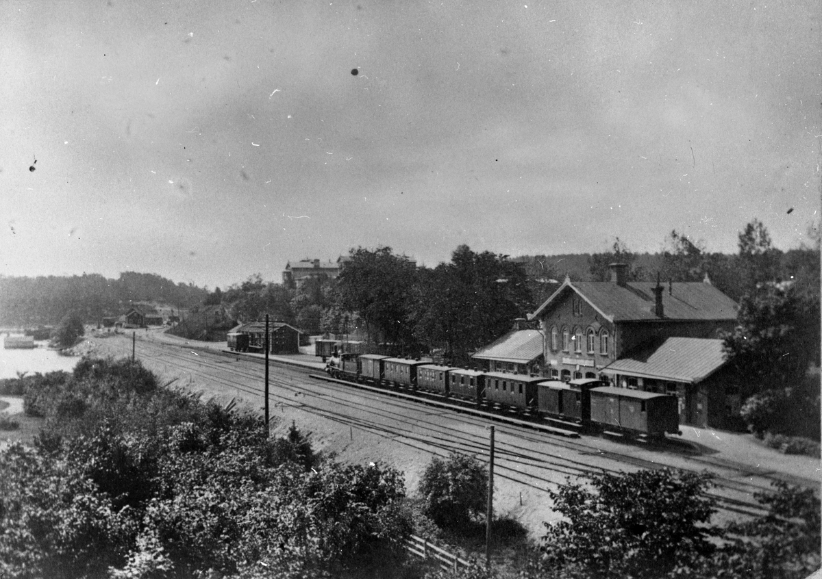 Första stationshuset. Stationsnamnet var från början Södertelje nedre.