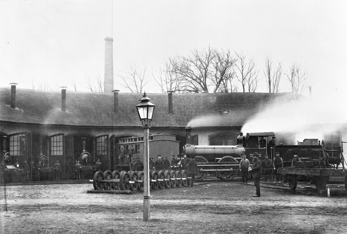 Uddevalla - Vänersborg - Herrljunga Järnvägs lokstall och verkstad. Loket som syns framme på bilden är UWHJ lok 3, Wenersborg.