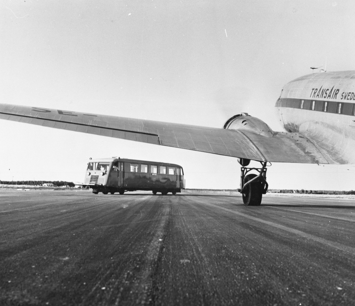 Statens Järnvägar, SJ rälsbuss korsar flygfältet.