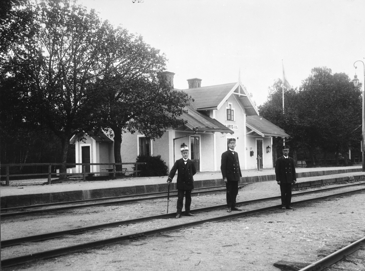 Trafikplats anlagd 1874. En- och enhalvvånings putsad stationsbyggning. Mekanisk växelförregling. På bilden syns stationsföreståndare Martin Björklund som var aktiv under perioden 1914-1919.