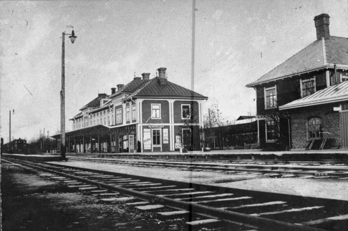 Centralstation. Station anlagd 1879. Stationshuset ritades av Adolf Edelsvärd. Både stationshuset och bangården har ombyggts flera gånger under tiden.