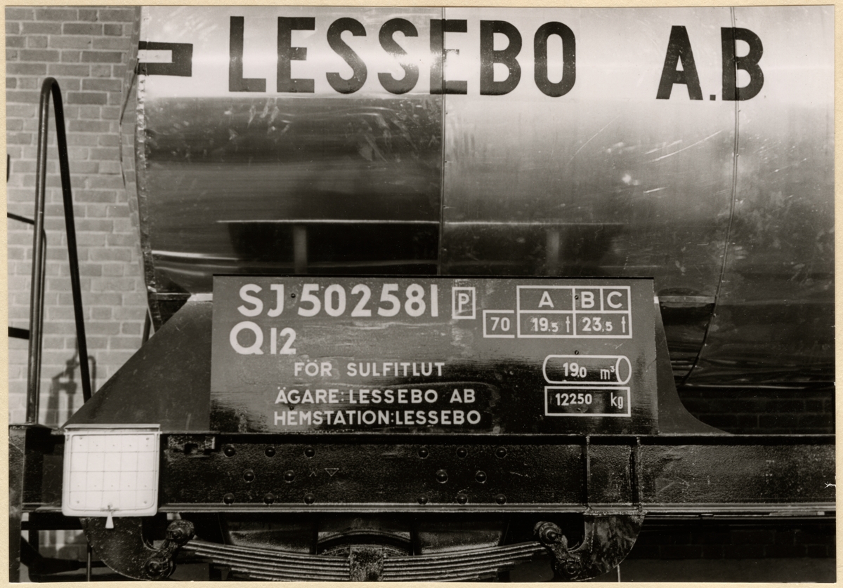 Godsvagn tillverkad av Trafikaktiebolaget Grängesberg - Oxelösunds Järnvägar, TGOJ verkstäder för Lessebo AB. Statens järnvägar, SJ Q12 502581. För transport av sulfitlut.