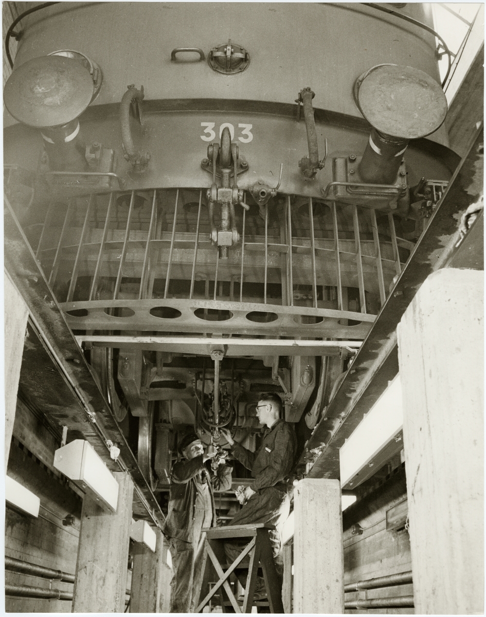 Trafikaktiebolaget Grängesberg - Oxelösunds Järnvägar, TGOJ Bt 303 vid underhåll på verkstaden i Eskilstuna.