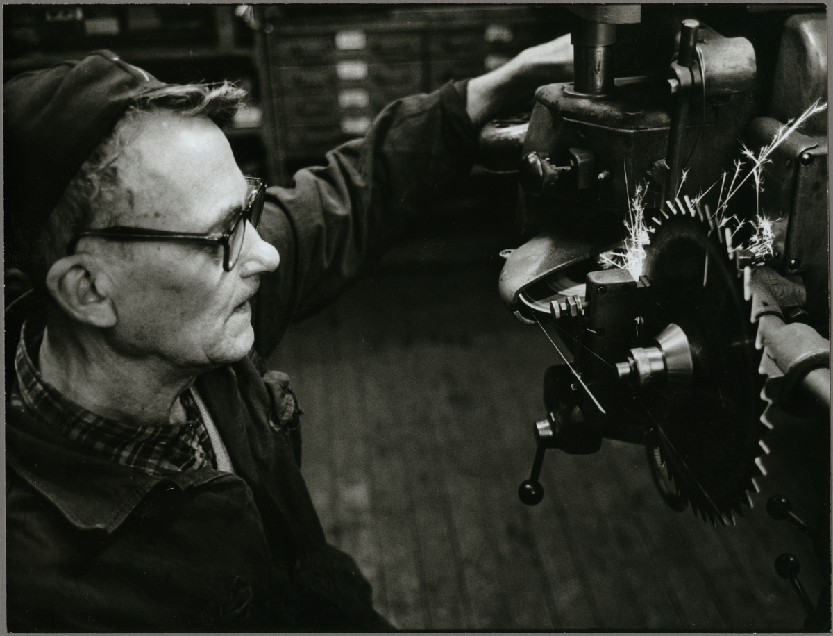 En sågklinga får mer skärpa vid Trafikaktiebolaget Grängesberg - Oxelösunds Järnvägar, TGOJ verkstad i Eskilstuna.
