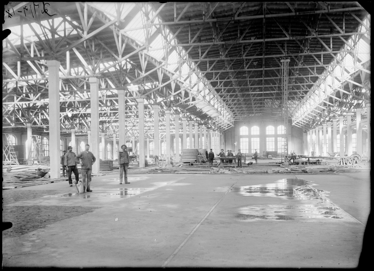 Byggnation av vagnverkstaden vid Statens Järnvägars Järnvägsverkstäder i Kirseberg, Malmö.