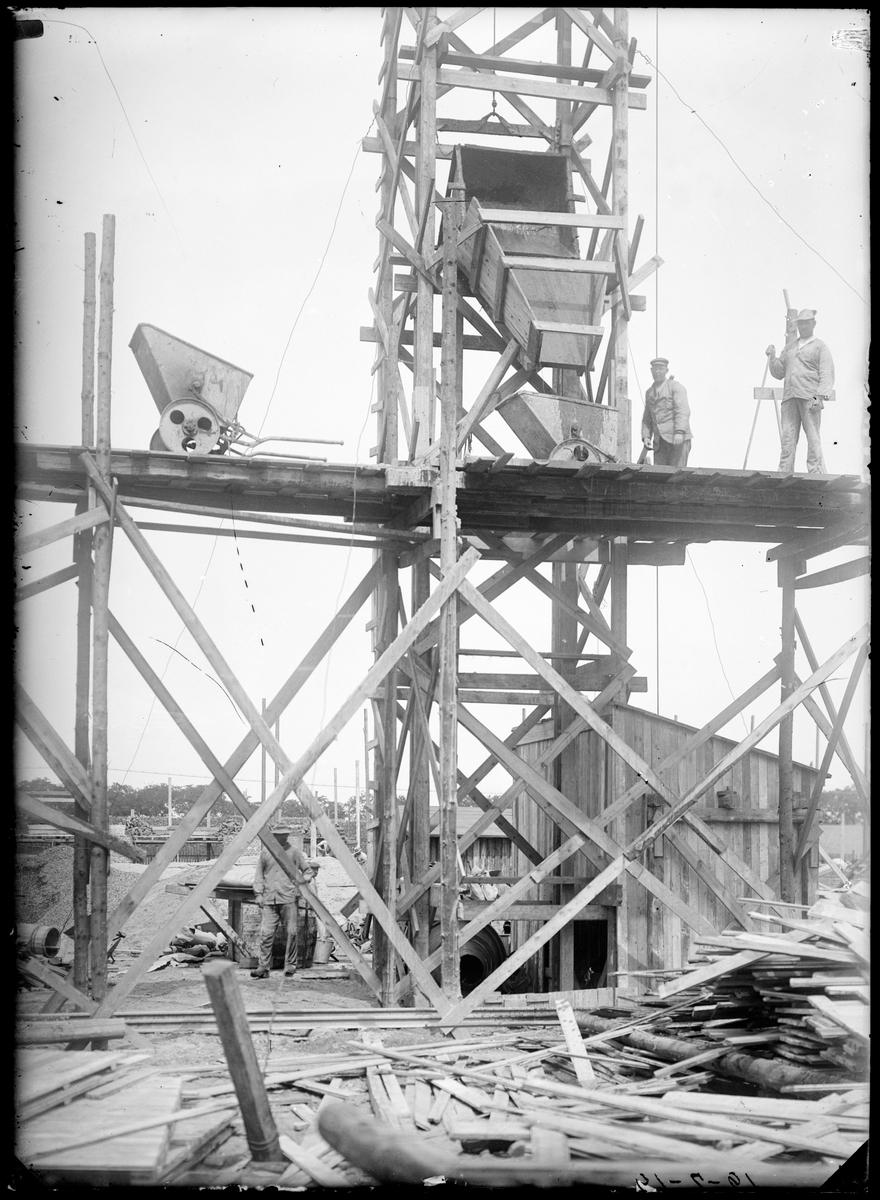 Byggnation av lokverkstaden vid Statens Järnvägars Järnvägsverkstäder i Kirseberg, Malmö.