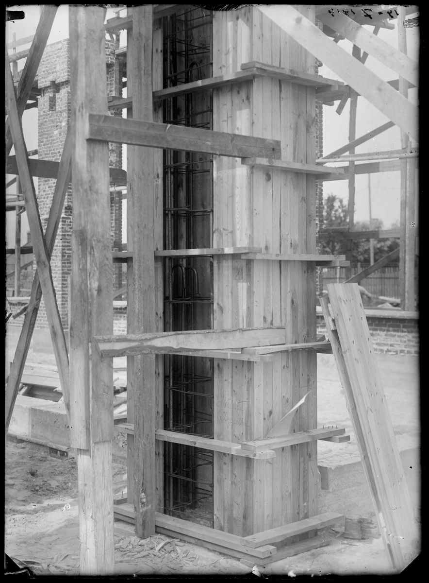 Byggnation av lokverkstaden vid Statens Järnvägars Järnvägsverkstäder i Kirseberg, Malmö.