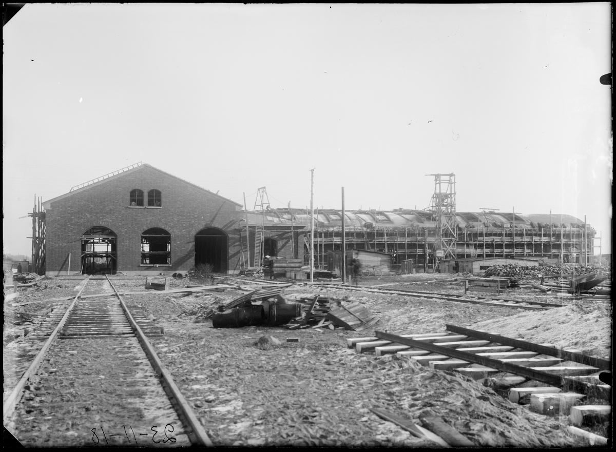 Titel: Byggnation av vagnverkstaden vid Statens Järnvägars Järnvägsverkstäder i Kirseberg, Malmö.