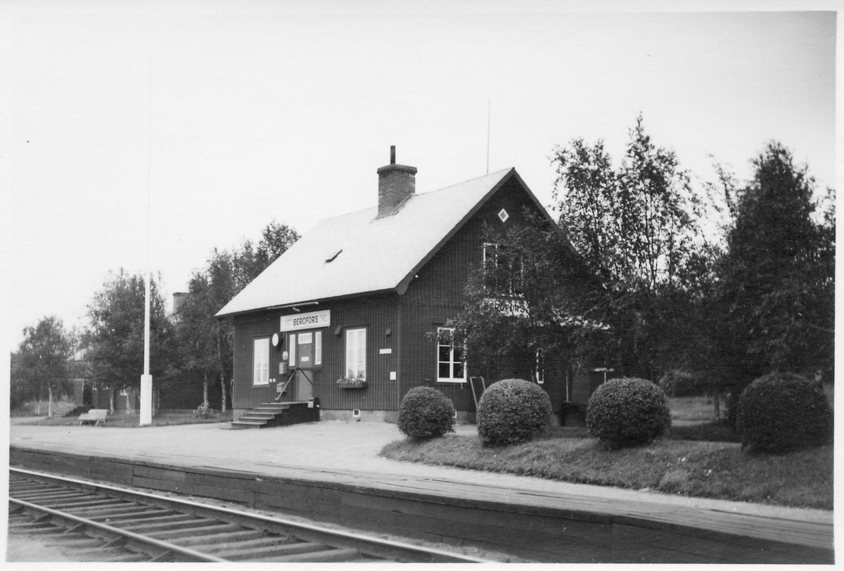 Bergfors station öppnades 1903 med stationshus i trä. Elektrisk växelförregling. Delen av Malmbanan vid Bergfors elektrifierades 1915. Stationen upphörde 1997. Del av trädgården.